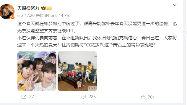 更有趣的一点,在即将开始的2024夏季赛,两支从二级联赛KGL获得KPL临时席位的战队,九江TKL和TCG,他们的背后是两位快手的主播,王者荣耀辣辣和陈天赐。