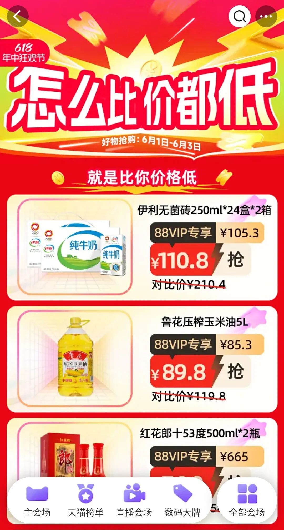 电商平台之间的比价动作也更为直接。电厂发现,在淘宝App搜索“比京东便宜”后,将跳转至一个比价页面,顶部醒目位置写着“怎么比价都低”的标语,下方是具体商品类目的价格对比,划分为“就是比你价格低”“天猫超市 就是低1元”“一大包零食 不惧比价”“工厂好货 价格更低”几个栏目,手指每在屏幕滑动一下,都能够看到“低价”“便宜”“划算”“超值”等字样。