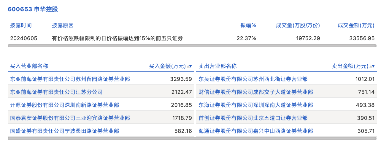 6月5日,申华控股今日涨1.78%,龙虎榜数据显示,上榜营业部席位全天成交1.27亿元,占当日总成交金额比例为37.81%。其中,买入金额为9733.86万元,卖出金额为2952.76万元,合计净买入6781.09万元。