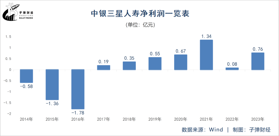 虽然中银三星人寿自2017年始已连续盈利七年,但多数年份处微利状态,且近两年的净利润大幅波动。