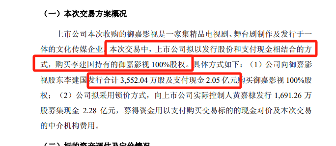 2014年11月,皇氏集团通过发行股份及支付现金方式收购御嘉影视100%股权,交易作价约7亿元。借此,皇氏集团转型为乳业+影视的双主业运营格局。