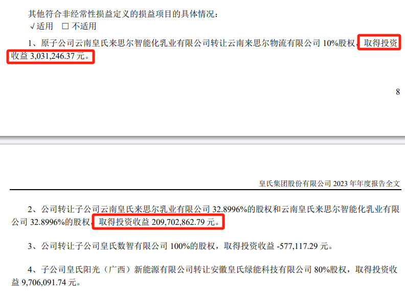然而,对比鲜明的是,皇氏集团2023年如果扣除股权转让产生的2亿元非经常性损益,实际亏损1.5亿。