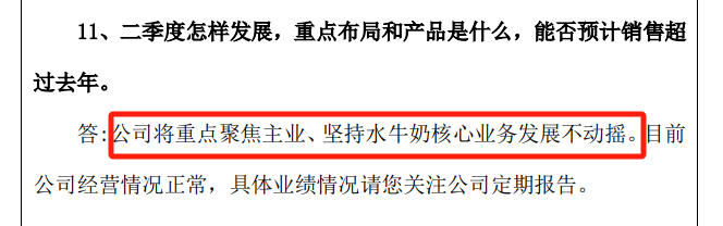 2023年业绩说明会上,皇氏集团称,2024年将重点聚焦主业、坚持水牛奶核心业务发展不动摇。