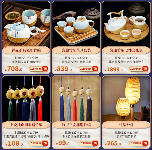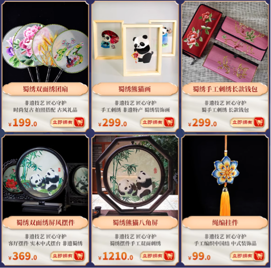 内容:通过省市联动的形式,在各大电商平台开设“四川非遗商城”专区,非遗购物直播间通过琳琅满目的非遗产品、非遗传承人的精彩直播,为消费者提供川渝非遗产品、文创产品、老字号产品等。消费者不仅可以便捷选购到省内各地优选非遗产品,还能欣赏到精美的非遗展品。通过直播互动、互动体验等多种形式,感受非遗的魅力。