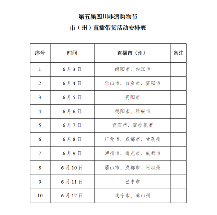 市(州)直播带货活动安排表