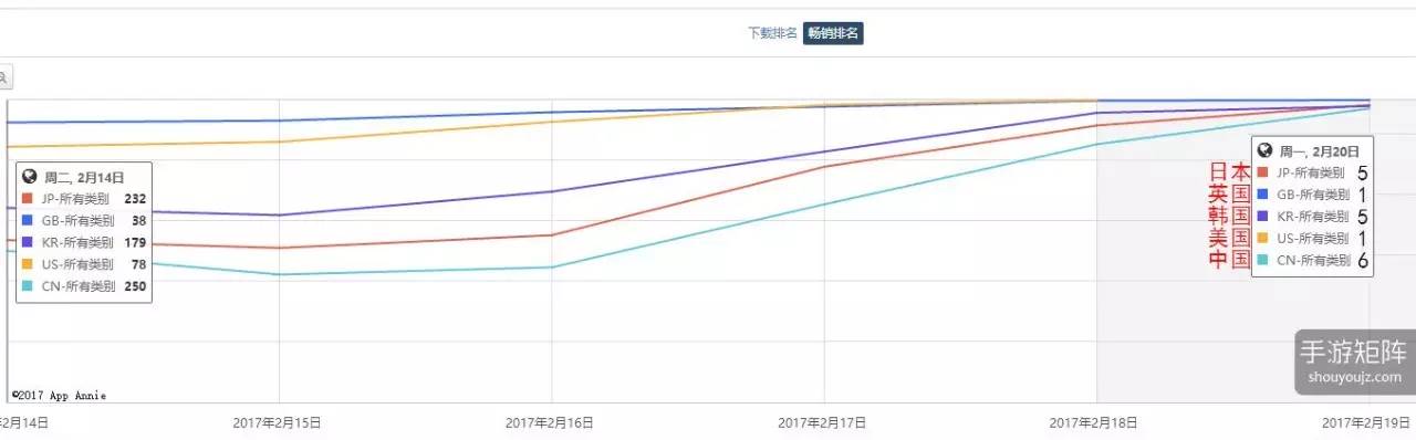 ▼ 以《我的世界》的畅销排名为例,不到一周时间内在全球几个手游大国都获得了巨大提升