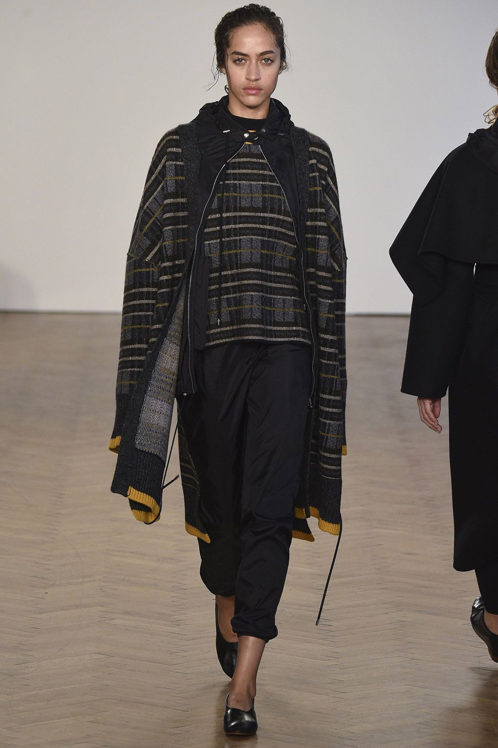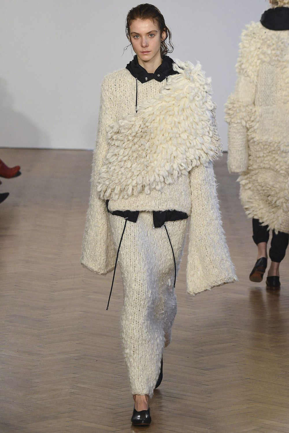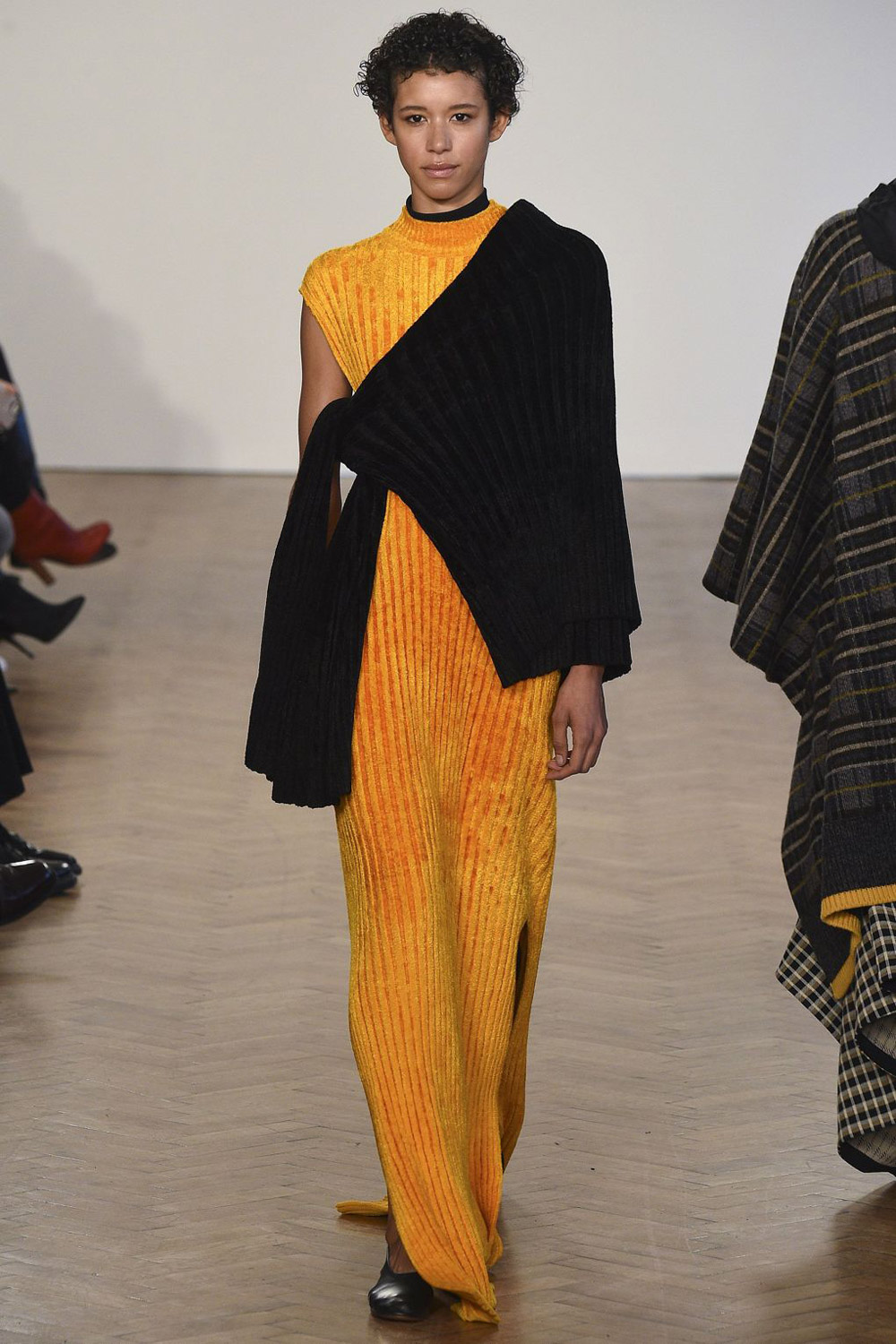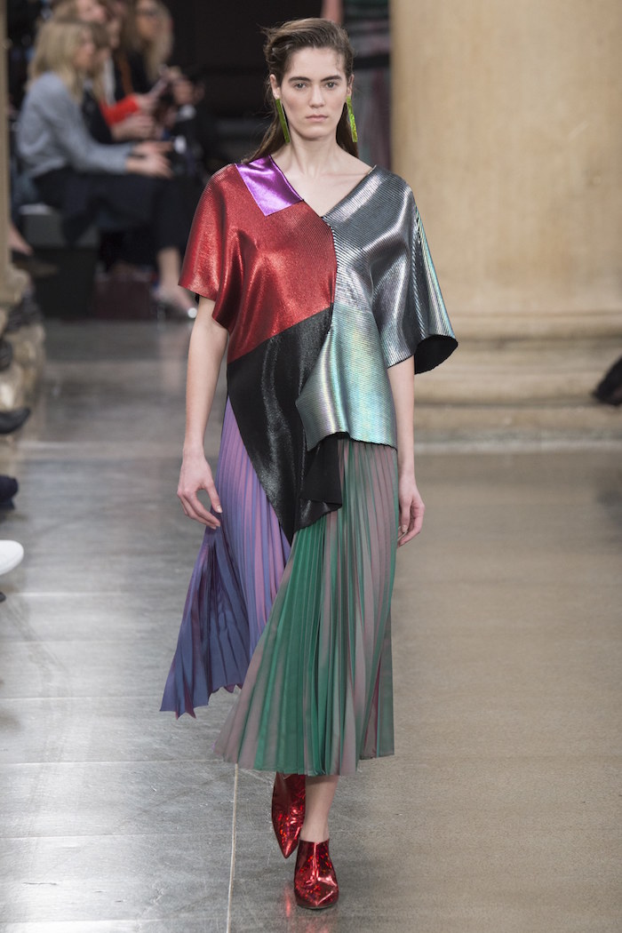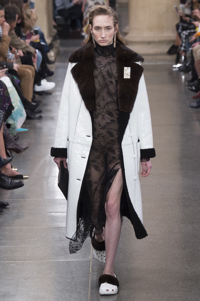 从实穿性的角度,羊毛品牌Pringle of Scotland的裙装设计应该更适合寒冷的冬天。你可以在这个系列里找到毫不刻意的时髦——剪裁得当,材质高级。你也可以看到一些多一点戏剧化的设计,比如那种几块毯子堆出来的外套,走路带风的巨型羽绒披风,以及大撞色的拖地长裙。