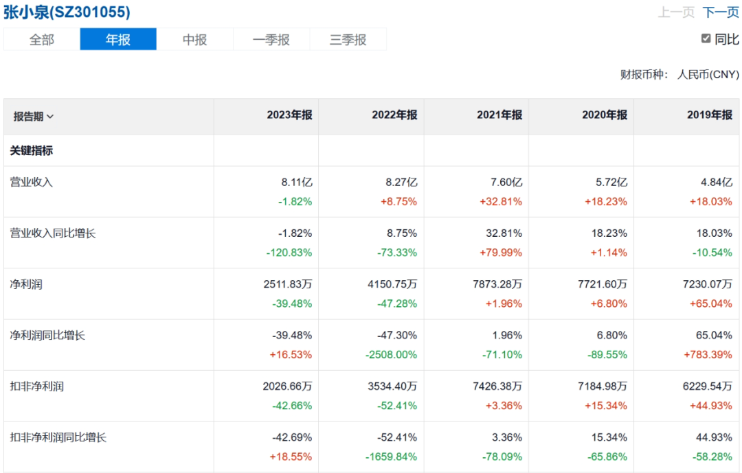2021年-2023年,公司营业收入分别实现7.60亿元、8.27亿元和8.12亿元,同比增长32.81%、8.75%和-1.82%,同期,归母净利润同比增长1.96%、-47.28%和-39.48%。今年一季度,其收入、归母净利润增速分别为11.38%和-9.58%。