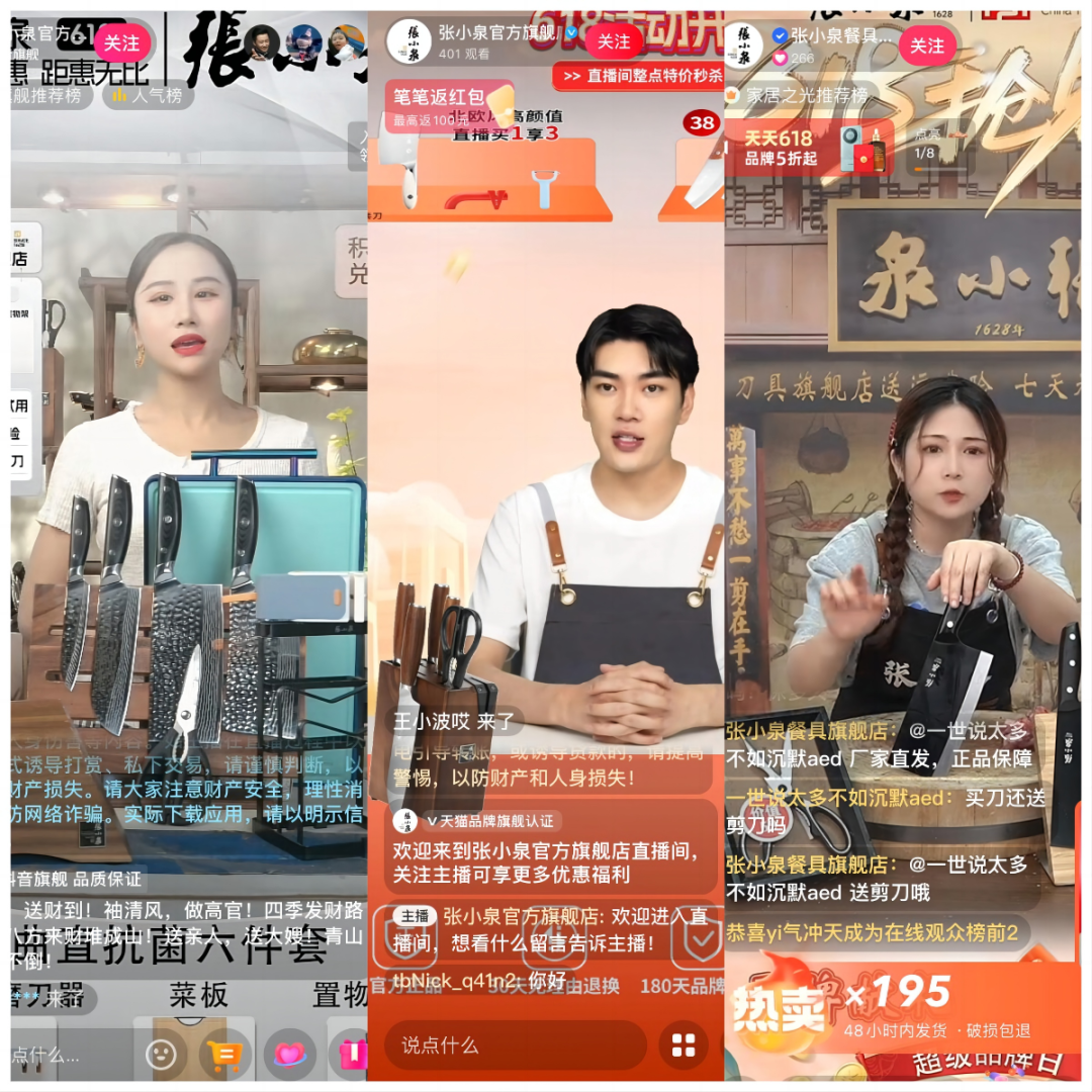 比如为了卖更多的货,张小泉积极的开拓新兴渠道,在2011年开始,张国标就组建了60号人的电商部。2015年,大热的美剧《汉尼拔》带货了“汉尼拔同款”,当前的很多销售就是通过电商平台进行的。近年来,张小泉还陆续登陆淘宝、京东、拼多多等平台开设旗舰店,在天猫、抖音、快手等平台进行多场直播带货。
