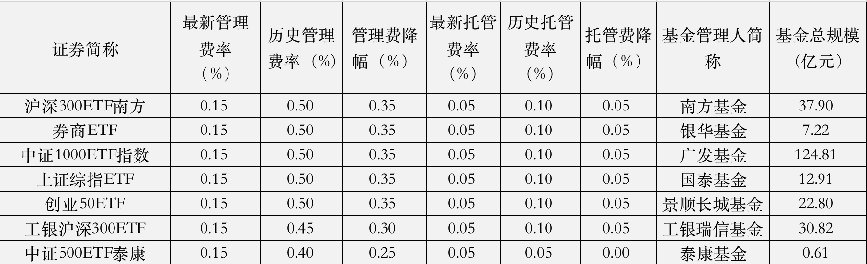 年内,包括今日宣布降费的银华券商ETF在内,共有7只存量ETF降低了综合费率。