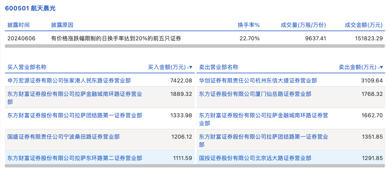 6月6日,航天晨光今日涨4.36%,龙虎榜数据显示,上榜营业部席位全天成交2.21亿元,占当日总成交金额比例为14.59%。其中,买入金额为1.3亿元,卖出金额为9184.36万元,合计净买入3778.73万元。