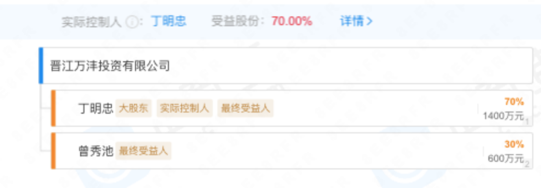 其中,晋江万沣投资有限公司的实际控制人正是特步副总裁丁明忠,持股70%。