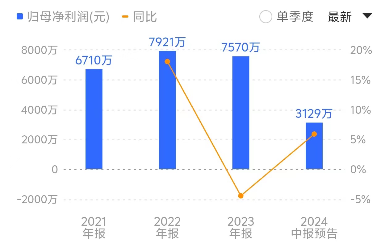 公开数据显示,2021年至2024年一季度,公司的营业收入分别为4.68亿元、4.91亿元、4.69亿元和1.13亿元,同比增长7.50%、4.84%、-4.36%和10.87%;同期归母净利润分别为6710.45万元、7921.04万元、7570.22万元和1795.40万元,同比变动-5.01%、18.04%、-4.43%和1.01%。