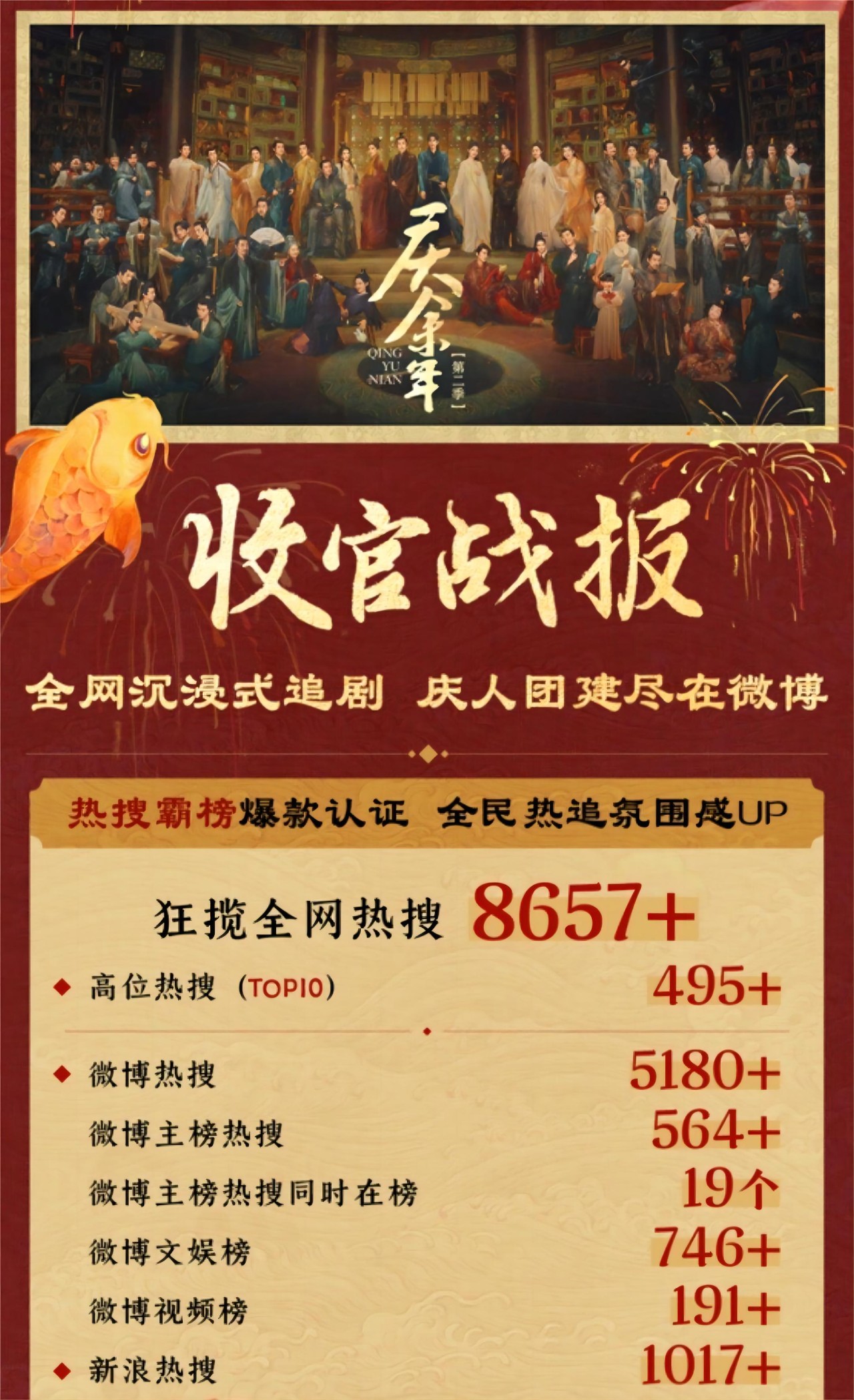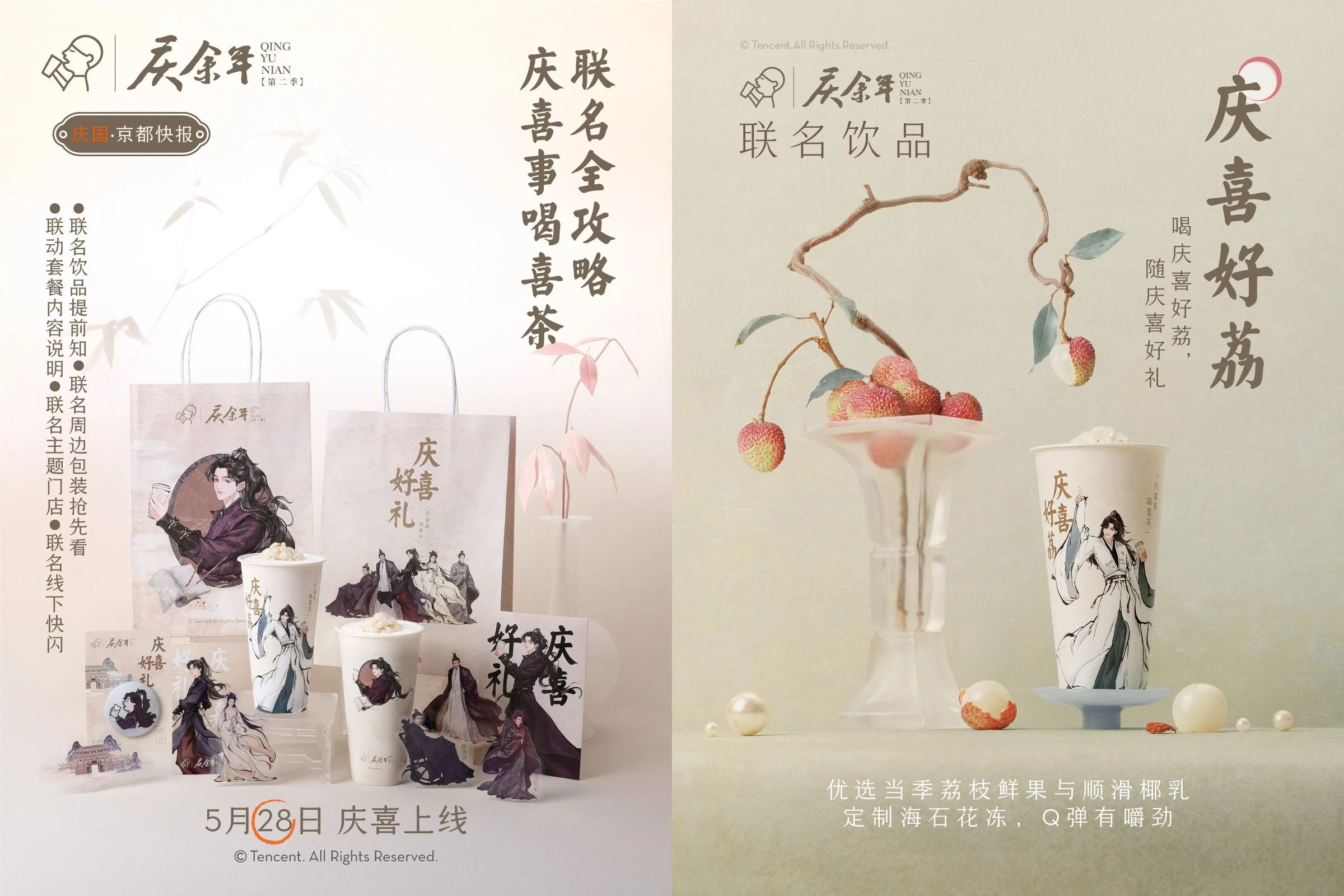 以最近“火遍半边天”的《庆余年2》为例,据喜茶官微信息,该活动与剧集中“范闲大婚”剧情的播出同步展开,“庆喜好礼”的联名主题与剧集的实时剧情具有强相关性。