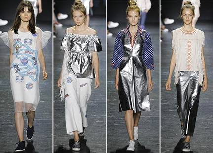除了在设计中嵌入传统中国文化,Vivienne Tam更是将各类美国“土特产”也演绎的活灵活现。在2017的春夏设计中,设计师首次讲美国宇航局的logo运用在了设计当中,冷静且科技感十足的银白两色点缀的“NASA”图标使整个系列看起来前卫又不失趣味性,着实让太空科幻迷们疯狂了一把。