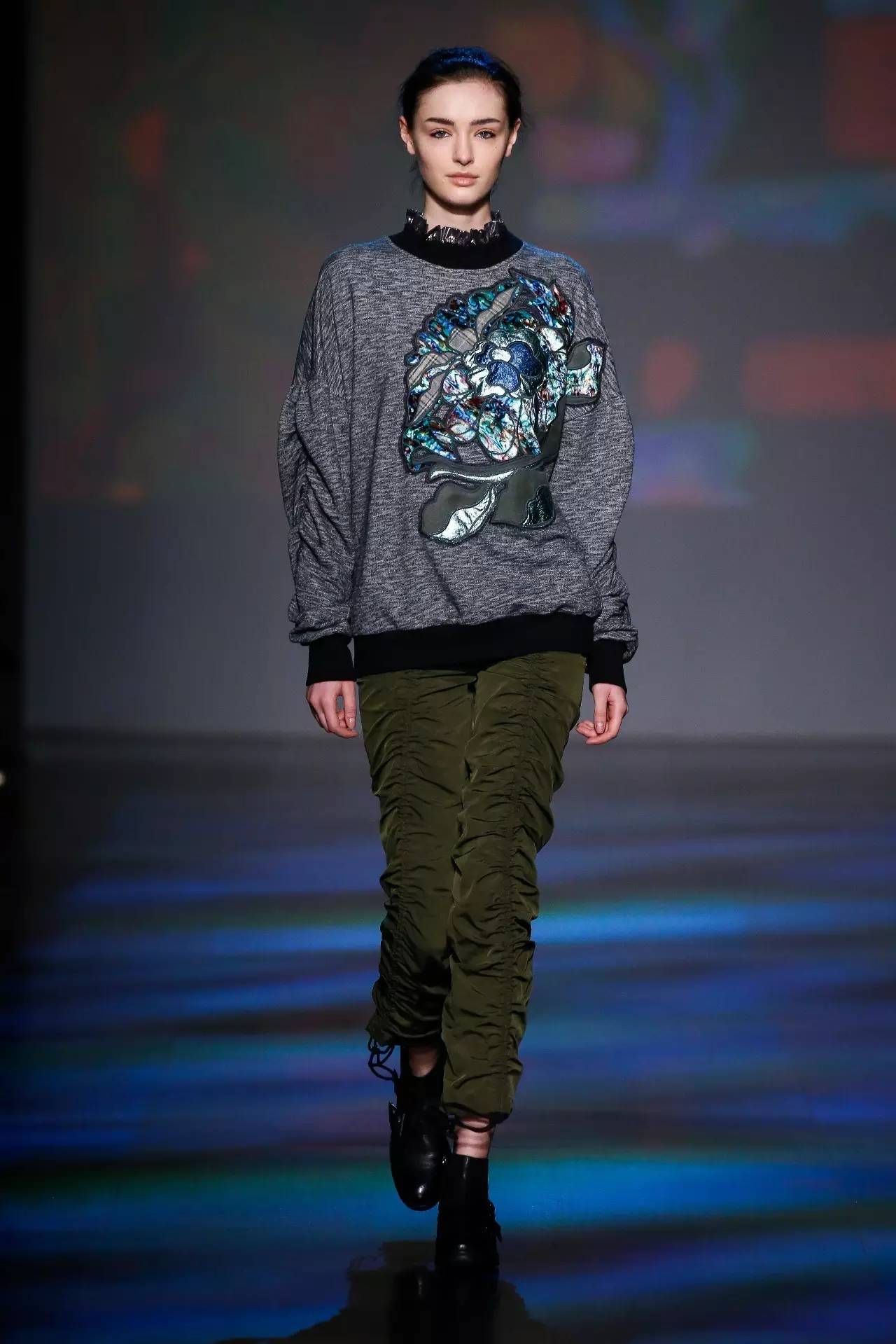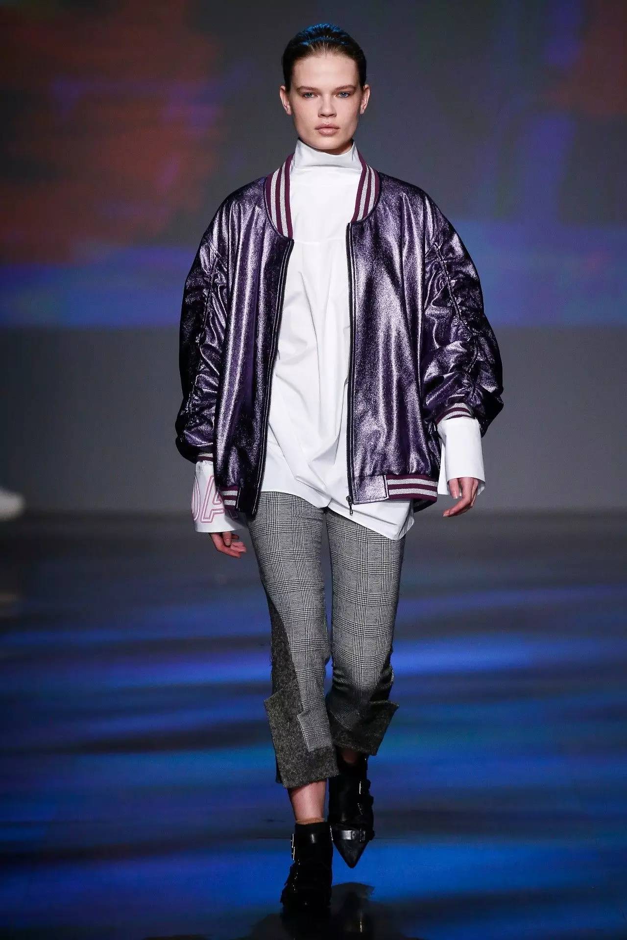 对于最新发布的2017秋冬系列,设计师运用鲜亮的色彩拼接和金属质感从视觉上重现了香港这座“不夜之城”的精髓所在。荧光玫红、荧光绿、魔幻紫以及午夜蓝绘制了香港大街小巷无处不在的霓虹景象。最具有标志性的三色交通信号灯和幽暗的地下隧道以荧光图案的形式打印在衣服上,勾勒了一幅幅现代都市生活的画面。