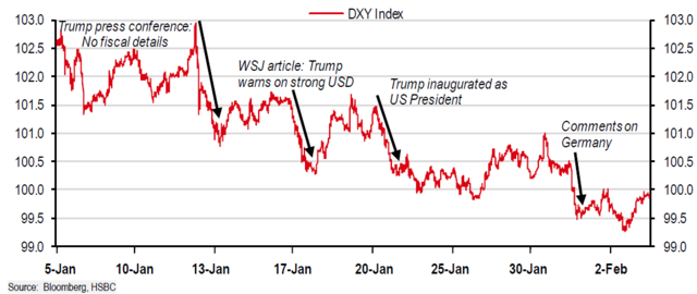 但汇丰认为,特朗普的确是美元在1月下跌的关键因素,但考虑到其政策重点的转向,特朗普也将成为美元重启涨势的关键人物。