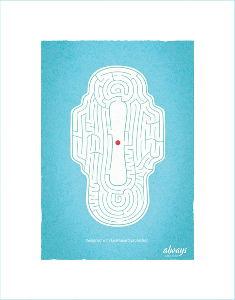 2011年,护舒宝在美国的一副海报广告在卫生巾中间加了一个红点,引发了广告界的轰动。广告博主Mark Copyranter称这幅海报在广告历史上的一次突破。