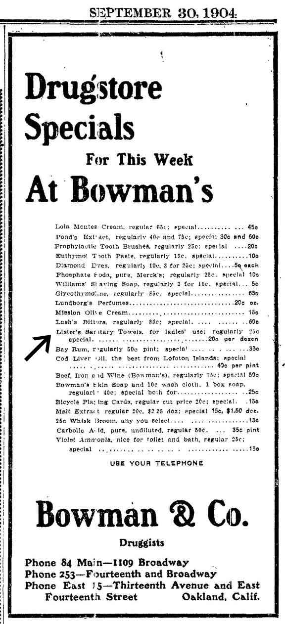 1896年,强生在美国推出了第一款商业化的卫生巾,名字叫Lister’s Towels (李斯特毛巾),只在药店里出售。当时这款产品在报纸上打的广告非常朴素,只有简单的说明——高级卫生巾,以及售价。从创意角度,这简直不能称之为广告。