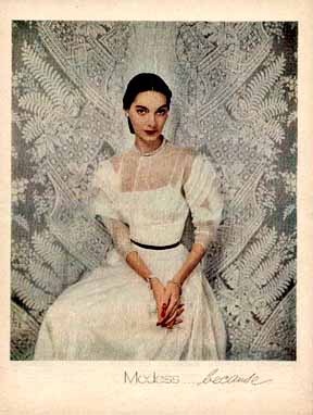 到了40年代末,强生在营销上掀起了一新的卫生巾潮流——把摩黛丝跟高端时尚联系在一起。摩黛丝从时尚行业请来了造型师、摄影师、服装设计师、模特来拍广告,广告标语也很类似如今香奈儿、卡地亚等大牌电视广告最后出现的品牌口号一样简洁,只有两个词:“Modess ….because。