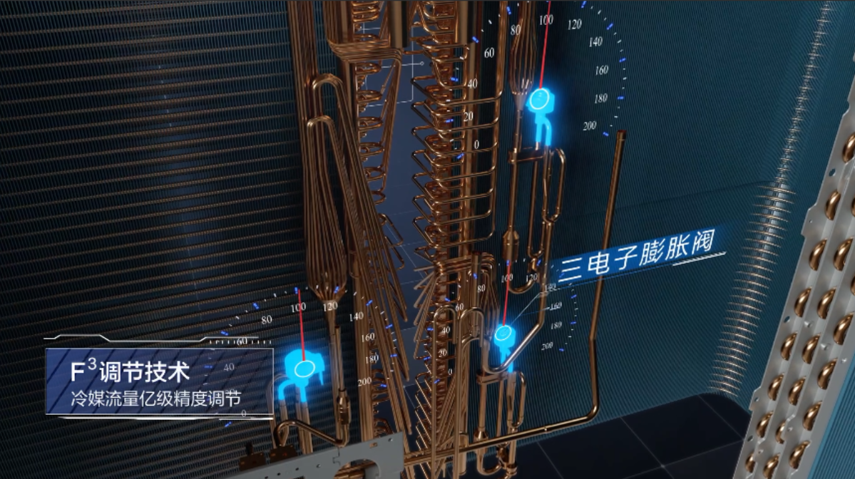 同时,通过行业首创梯变分流F³换热系统、全系喷气增晗科技,过渡季效率实现提升21%;更使用了行业领先高效轴流送风系统,送风能力提升30%。
