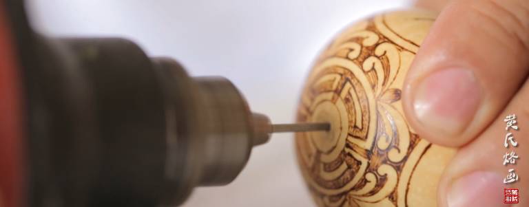 除了葫芦,烙铁笔也是黄旭创作必不可少的工具。无论是粗的、细的、扁的、圆的,各式各样应有尽有。这些笔并非是现成的,而是黄师傅亲手烧制打造的,更能使用自如,画出自己满意的线条图案。