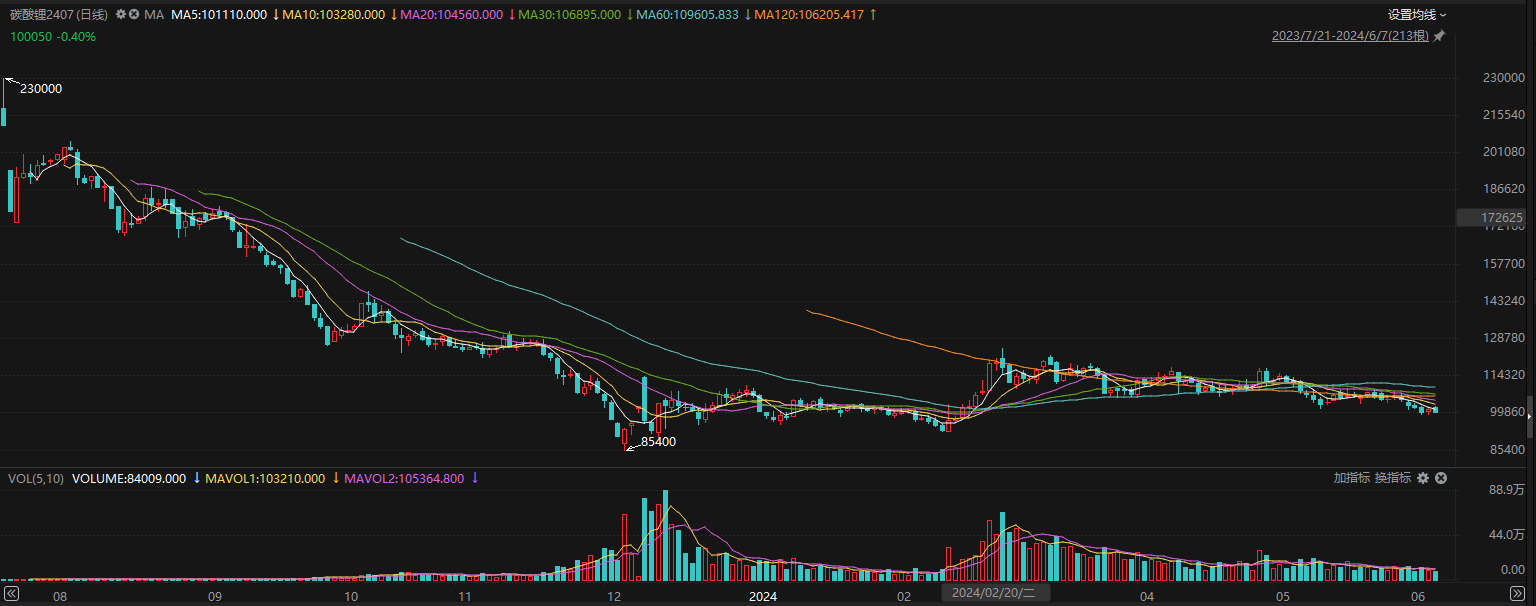 自2023年下半年,锂电池储能市场便已发生重大变化。2023年7月21日,广州期货交易所碳酸锂期货正式上市,上市后市场对基本面未来供应过剩快速形成一致预期;2023年四季度订单持续减少不断强化市场悲观情绪,锂矿定价机制调整让利进一步打开了锂价格下行空间。华泰期货研报6月7日认为,碳酸锂相关市场产量及库存持续增加,现货价格继续探底。