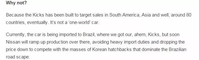 因为Kicks的目标在南美洲、亚洲,大约80个国家,这并不是我们希望看到的一款全球车型。
