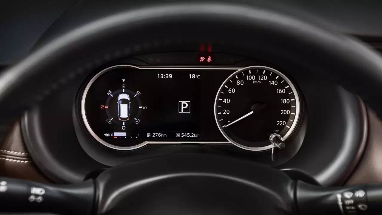 中控台由人造皮革覆盖,这是非常聪明的做法,既减少成本又具有不错的视觉效果。仪表盘的右边是一目了然的机械指针仪表,左方是可显示导航信息的电子显示屏。