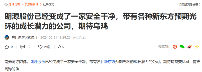 股吧中有投资者分析,东方行知获得朗源股份控制权,或将帮助俞敏洪实现A股布局。