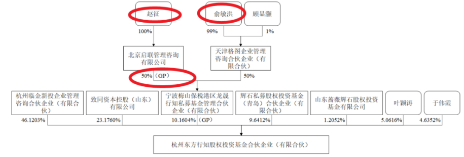 引人关注的是,东方行知是2023年12月25日新设立的主体,尚未开展其他实际经营活动或对外投资。股权穿透图显示,俞敏洪通过其持股99%的一家平台间接持股东方知行,新东方系“老人”赵征也间接持股东方行知。赵征曾担任新东方集团企业发展部投资经理、投资合作部主任等职务,并曾以新东方产业基金总经理、俞敏洪特别助理身份出席公开活动。