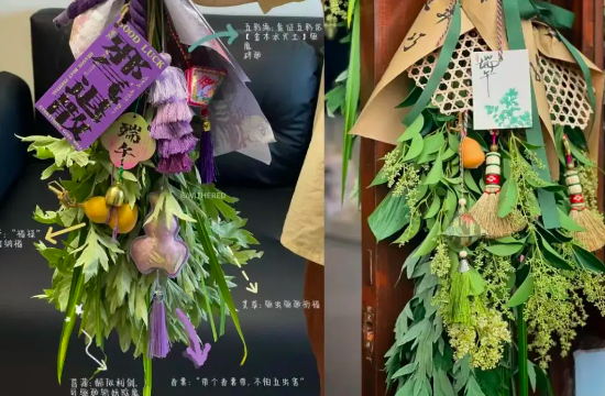 今年端午,一种新中式的“艾草门挂”火了——原本两三块钱一把的艾草,经过花艺师的装点,搭配五色流苏、小葫芦、福卡、香囊御守等富有吉祥寓意中式配件,一下子就卖到了上百元、甚至近两百元的单价,临近端午供不应求。