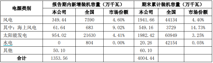 其中海上风电业务是优势业务。截至2023年底,公司海上风电并网装机总规模549.16万千瓦,占全国市场份额的14.73%,为全国在运海风规模最大的上市公司。五个百万千瓦级海上风电基地逐步成形。