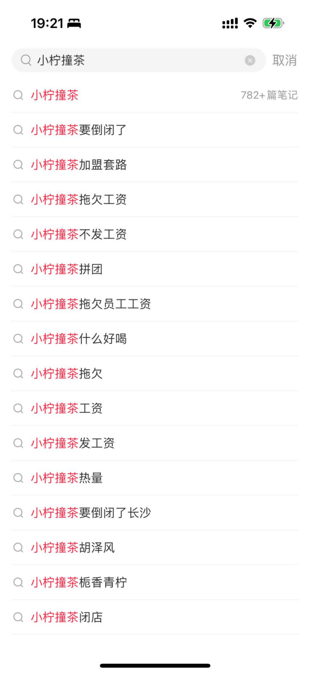 在小红书上搜索“小柠撞茶”,与该品牌相关的话题有十多个,涉及负面内容的话题超过一半。