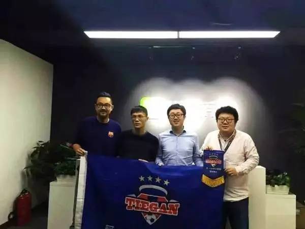 ▼懂球帝CEO陈聪(左二)与铁杆体育团队的合影