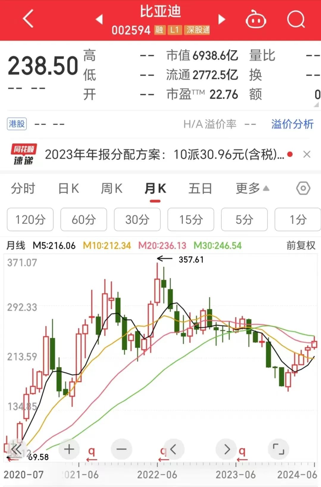 市场不是没预测到今天的难题。从2022年年中开始,比亚迪股价开启了超过1年的漫长下跌。