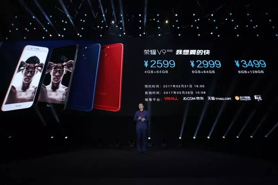 2017年2月21日,在众多“花粉”(华为粉丝的昵称)的簇拥和大批媒体记者的见证下,荣耀V9&荣耀8青春版新品发布会在北京盛大召开。