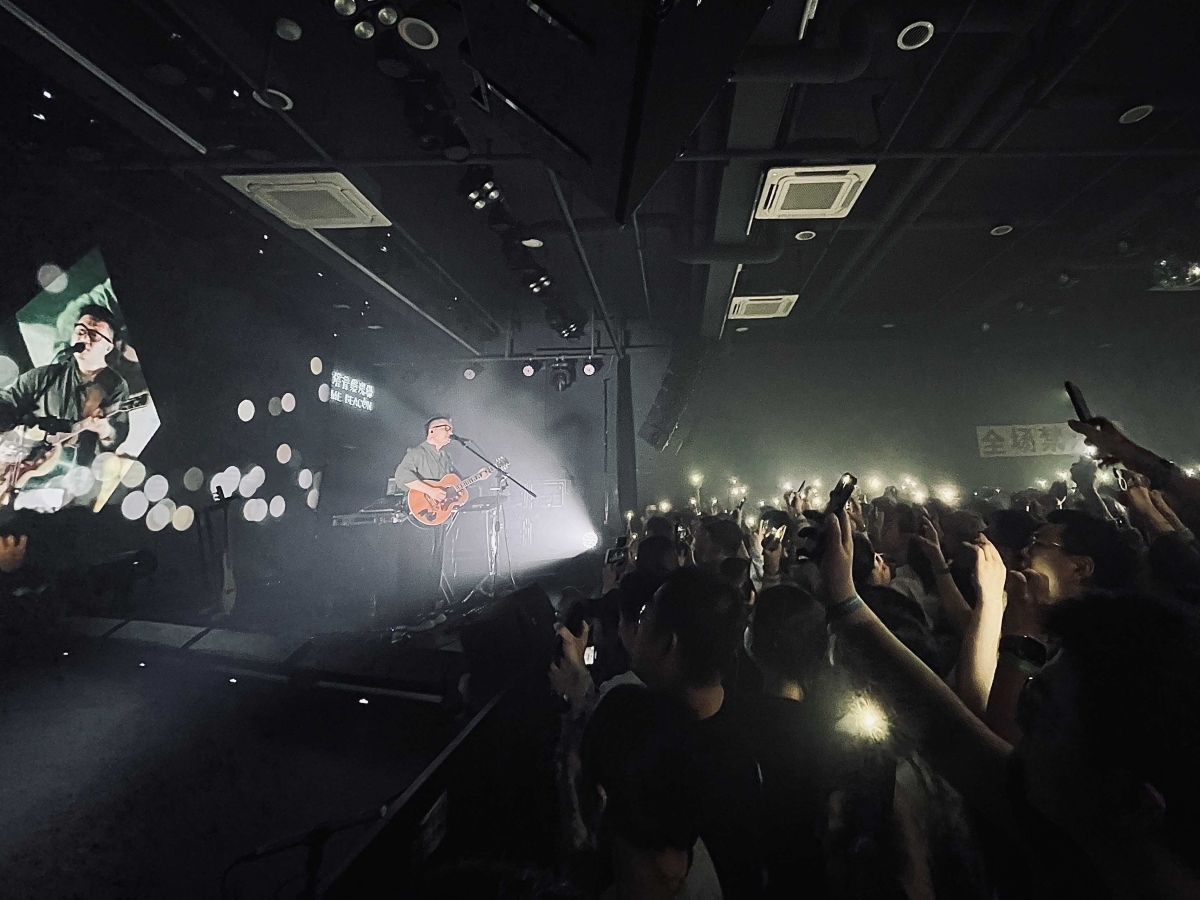 演出现场,暗杠不仅演唱了《童话镇》《说书人》《阿婆说》《听书》《千里行走》等经典歌曲,还带来了新专辑中的《人间》《我们在年轻分离》《敖鲁谷雅》等作品,引发现场歌迷大合唱。