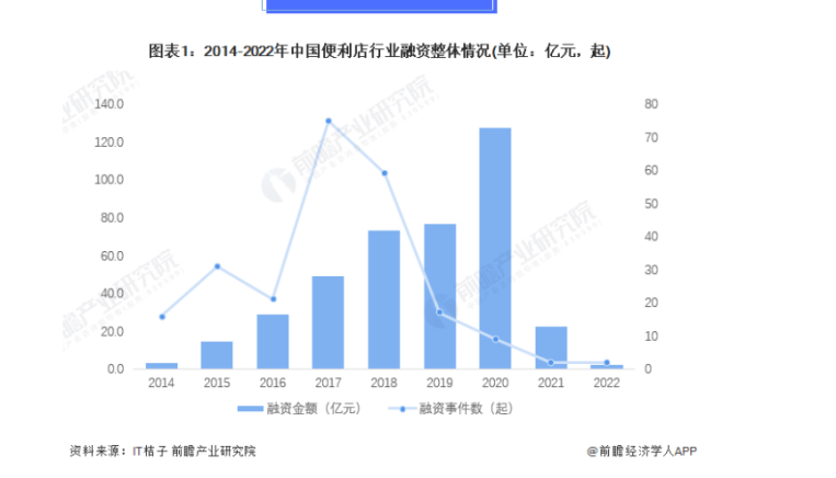 从前瞻产业研究院公布的2014-2022年中国便利店行业融资的情况就可以看出,2021年开始整个赛道不论是融资事件还是金额都有大幅度下降。