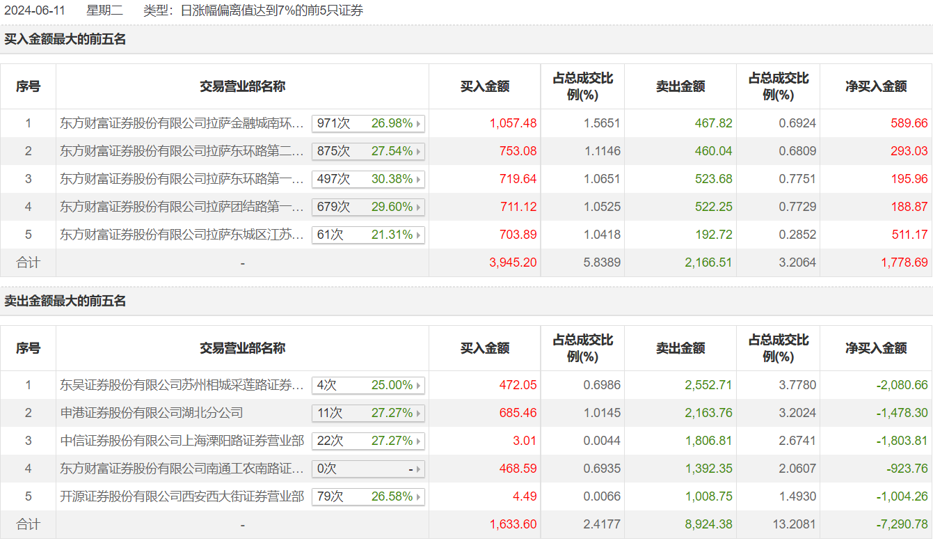 具体来看,知名游资现身龙虎榜,孙哥(中信证券股份有限公司上海溧阳路证券营业部)净卖出1803.81万元。此外,东方财富证券拉萨金融城南环路证券营业部、东方财富证券拉萨东环路第二证券营业部分别买入1057.48万元、753.08万元;东吴证券苏州相城采莲路证券营业部、申港证券湖北分公司分别卖出2552.71万元、2163.76万元。