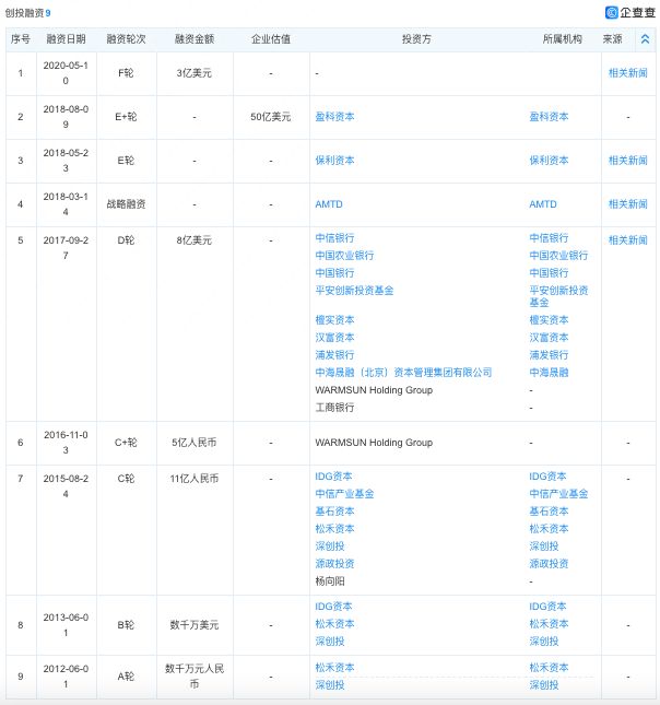 最新一笔融资为2019年底的3亿美元融资,融资完成后柔宇科技估值60亿美元(以当时汇率计算,约500亿人民币)。2020年,柔宇科技以60亿美元估值跻身《2020中国新经济独角兽200强榜单》前12名。