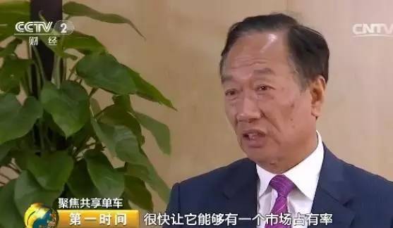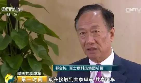 富士康科技集团总裁郭台铭:就是现在接触到共享单车、共享汽车,进入到这些很多的网络的,等于说硬件和软件要结合的时代,所以说富士康做到这个就蛮重要的。我们在制造的领域,在设计开发的领域,可以把这家公司很快地让它有一个市场占有率。