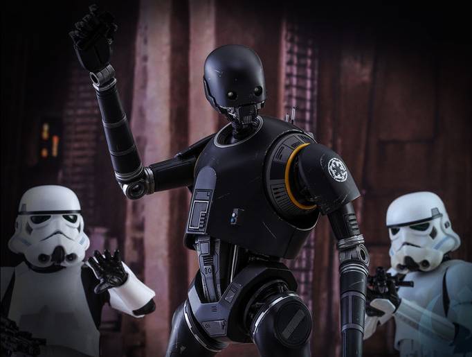 不过去年上映的《星球大战:侠盗一号》中,让星战迷除了上面提到的“黑白双煞”又多出了一个耍宝卖萌的“毒舌”机器人K-2SO。