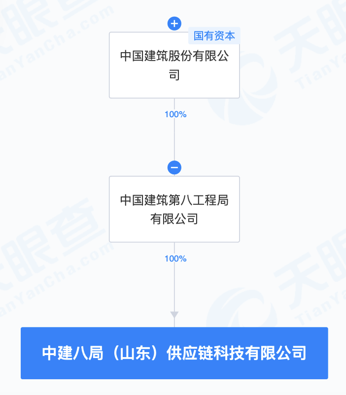 天眼查APP显示,近日,中建八局(山东)供应链科技有限公司成立,注册资本3亿元,经营范围包含:供应链管理服务;互联网设备销售;区块链技术相关软件和服务;数字技术服务等。该公司由中国建筑间接全资持股。