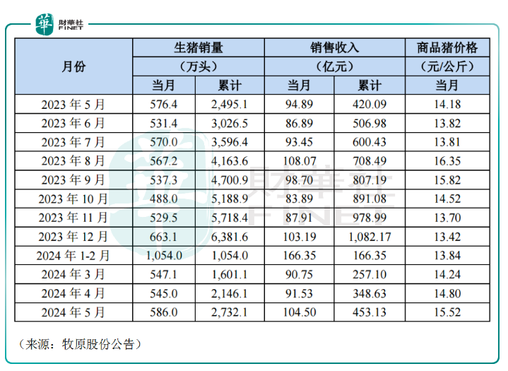其中,中粮家佳康(01610.HK)数据显示,2024年5月份,公司生猪出栏量26.5万头,环比增长8.61%,商品大猪销售均价为16.0元/公斤,环比增长4.85%。