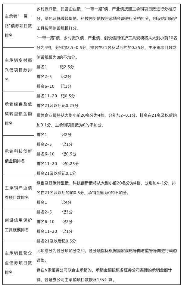 相应地,将第三十七条修改为:“发行定价利率指标为扣分项指标,初始分为5分。按照证券公司评价期承销的债券发行利率在上市后前5个交易日内与该债券中证估值收益率的最大偏离程度统计,以平均值从大到小排名。已有估值的,排名第1至5名的,扣5分;第6至10名的,扣3分;第11至15名的,扣1分;第16至20名的,扣0.5分;排名第21名以后的,不扣分。债券未上市的不得分,上市首日无估值的顺延至次日。”
