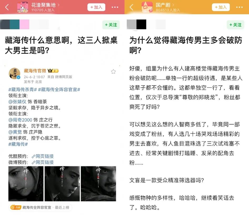 失败的实践令人逐渐务实,行业对流量主演的期待不断下调,最终锁定在两点:内部自带的强效宣传和数据女工,外部吸引的路人吐槽与粉圈乱战。佳作能因此锦上添花,非佳作运气好的话也能跻身话题爆款。