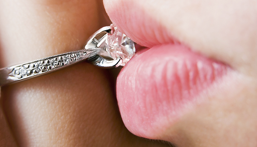 “货真价实、店大靠谱”的周大福是木木口中的婚戒首选。“婚戒还是希望在传统金店买,因为质量会比较有保障。对这些店没有太多概念,周大福又是里面最有名的,就选它了。”木木在香港有一个同为时尚达人的Friend,于是她把这一生一颗的大钻石托付给了这位好友。精明的木木给好友的唯一要求是,钻要大颗。“成色和精度是其次,反正不细看也看不出咯,大大的一颗钻石戴起来很有面子哈哈。”一次和她吃饭的时候看到了这颗接近一克拉的钻戒,大而闪亮的钻石和她纤长的十指十分相宜。