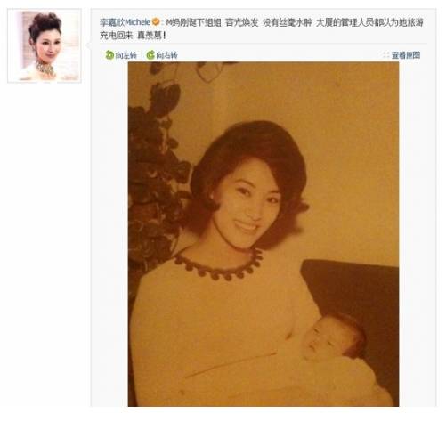 对了,这张可是李妈妈刚生产完的照片哦,容光焕发、没有水肿。李嘉欣自己都感叹,羡慕妈妈。