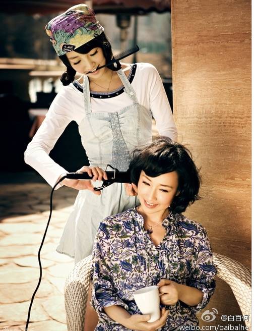 前几年,白百何还拉着她妈妈,为杂志拍摄了一组写真。同样也是不像母女像姐妹的组合。